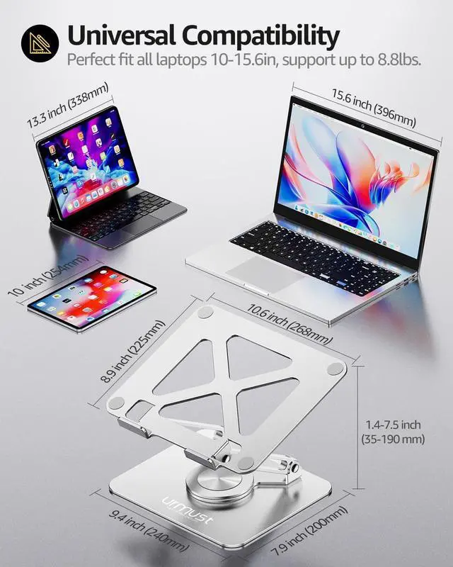 Wide CompatibilityLaptop stand for MacBook 12 inch/ 13 inch, MacBook Air 13 inch, MacBook Pro 13 inch / 14inch/ 16 inch, Dell XPS HP Lenovo Acer Chromebook and more All 10 -16 inches laptops.