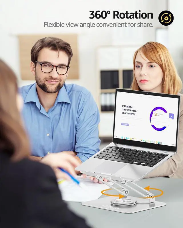 360°RotationFeaturing a 360° rotatable Two-axis connecting with the base, makes the 360°rotation more flexible, computer stand allows you to swivel your laptop to any angle.