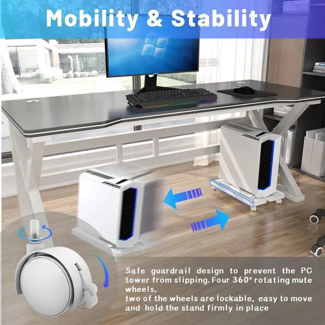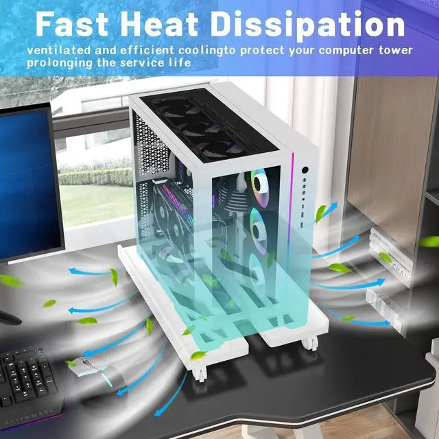 This PC Stand allows you to elevate your computer tower for easy mobility and quick access to your computer. The stand allows you to declutter your office space, properly ventilate your computer tower, and create mobility