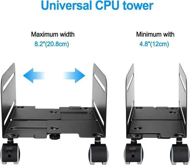 ADJUSTABLE DESIGN: The adjustable range of the computer CPU stand cart is from 4.7 inches to 8.2 inches, which is suitable for most ATX computer mainframes on the market.