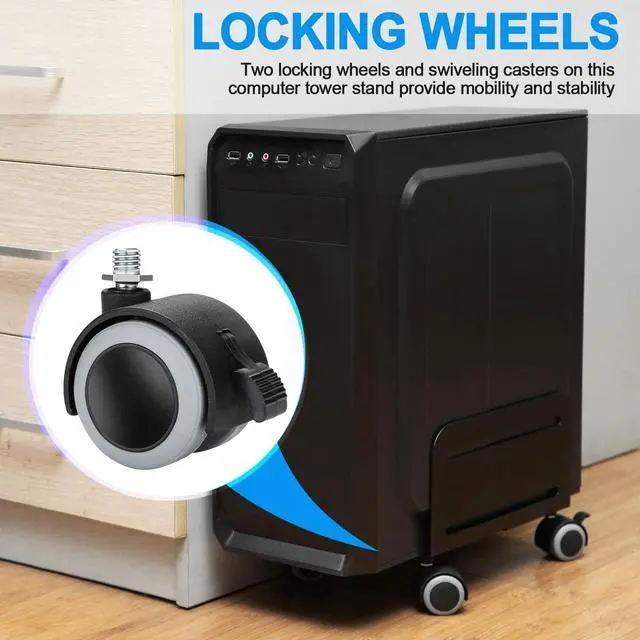 STABLE & DURABLE: The CPU steel rolling stand is equipped with four wheels. Of which, two locking wheels and two caster wheels provide mobility and stability for the stand to some extent. Rolling it around can make you easier to see the back of the computer.