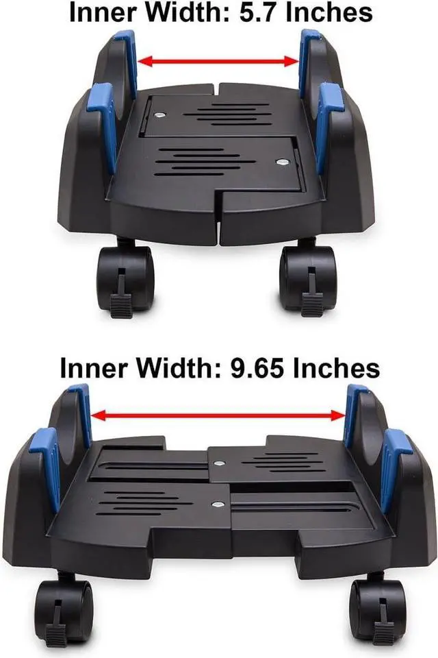 Adjustable computer stand is designed to support and elevate most desktop/tower style computers. Increases airflow and saves desktop space by storing the CPU under or beside your desk