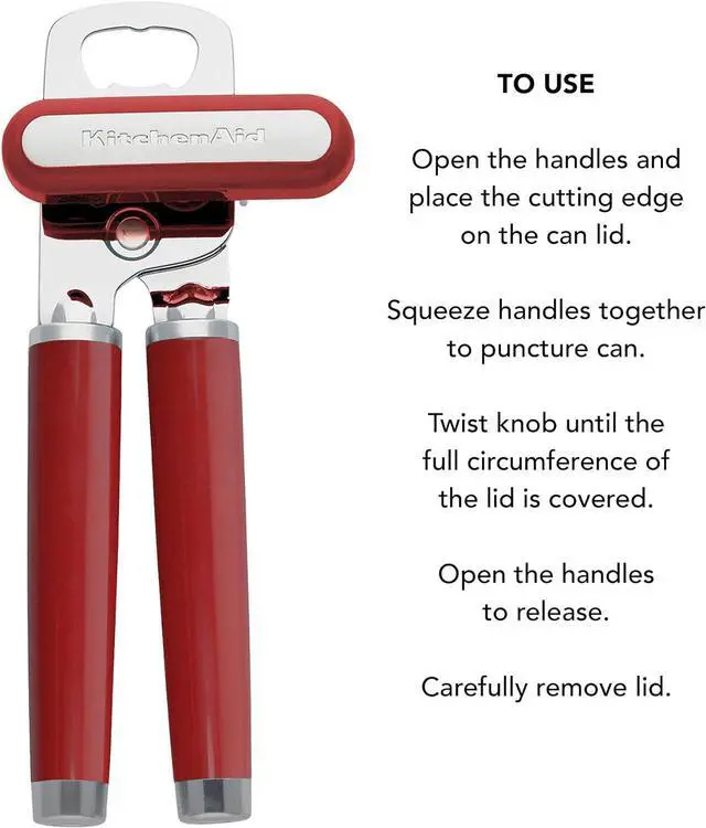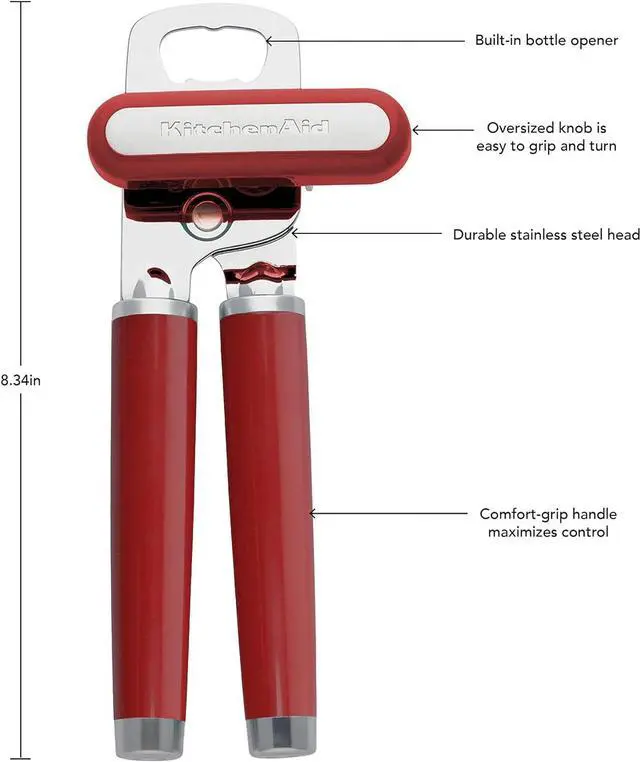STAINLESS STEEL BLADE: The KitchenAid can opener is made from strong stainless steel that is designed to easily puncture and open all types of cans and bottles.