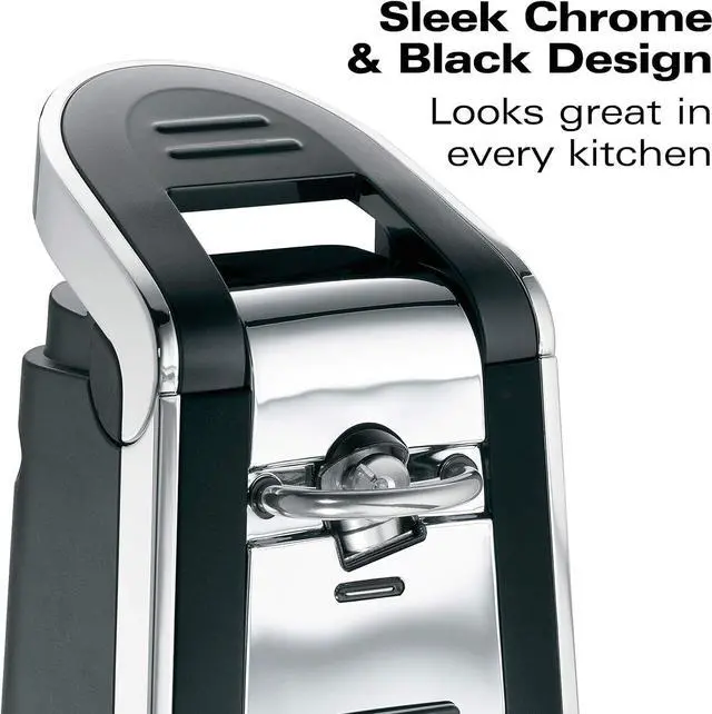 Hamilton Beach Smooth Touch Electric Automatic Can Opener with Easy Push Down Lever, Opens All Standard-Size and Pop-Top Cans, Extra Tall, Black and Chrome, 76606AG