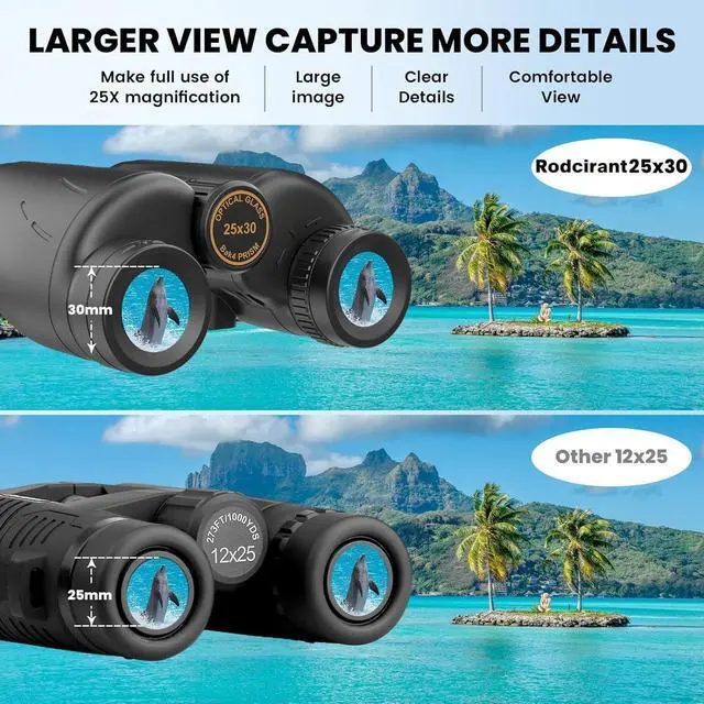 Binoculars 25X30, HD binoculars for adults high powered deliver 411ft/1000yds large field of view. Capable of delivering a clear image from more than 700 feet away. Perfect for bird watching, hunting, Therter and sports events.
