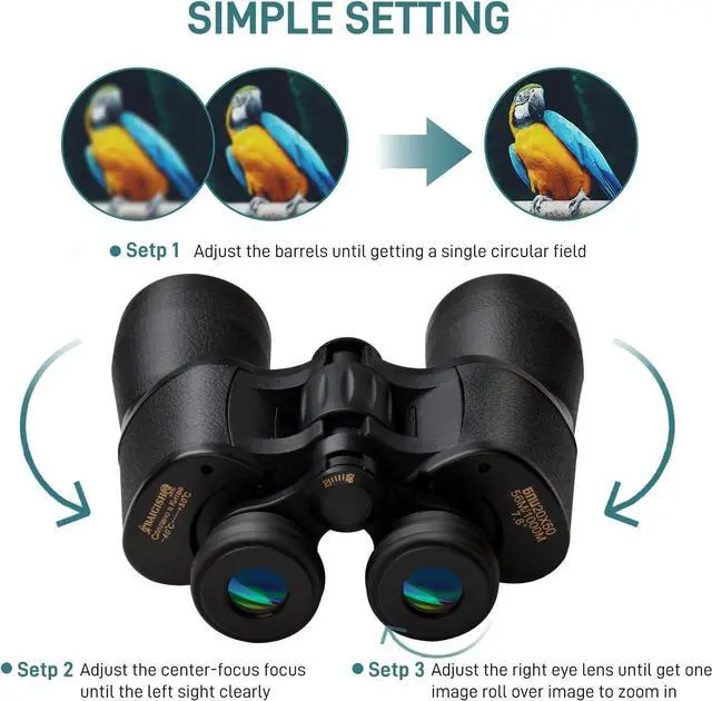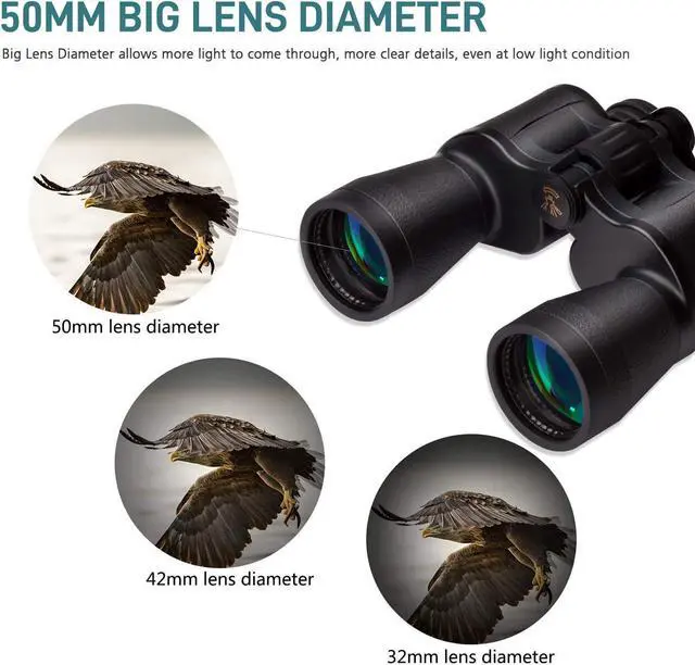 Binoculars for Adults High PoweredBinoculars, with 20X magnification and 50mm objective lens, provides wider field of view at 1000 yards. and provides high definition without a color-changed or blurred image. so you'll be able to observe a great deal without actually adjusting their position.