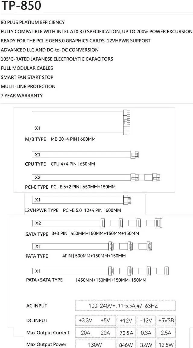 Wattage: 850W