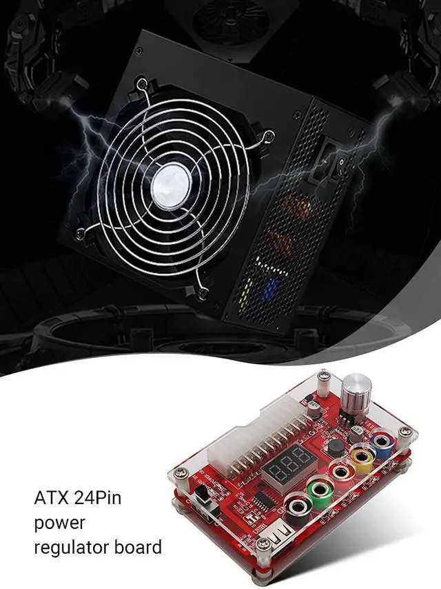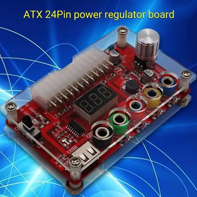 ATX 24 Pins Power Supply Breakout Board and Acrylic Case Kit Module Adapter Power Connector Support 3.3V/5V/12V 1.8V-10.8V(ADJ)