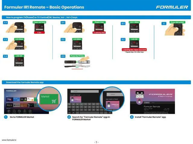 Use the Formuler Remote app (Available on your Formuler's/Dreamlink's Market app) to program your IR1 remote and control your digital TV.