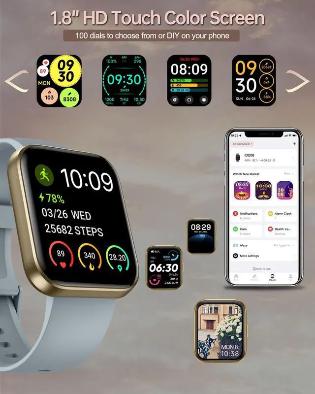 ![Alt view image 4 of 7 - Smart Watch for Men Women [Answer/Make Call], 1.8" Touchscreen Fitness Tracker with Heart Rate Blood Oxygen Sleep Monitor Compatible with iPhone & Android, Alexa Built-in, IP68 Waterproof Watch](https://c1.neweggimages.com/productimage/nb640/C3H5D2512290GKE4F1C.jpg)