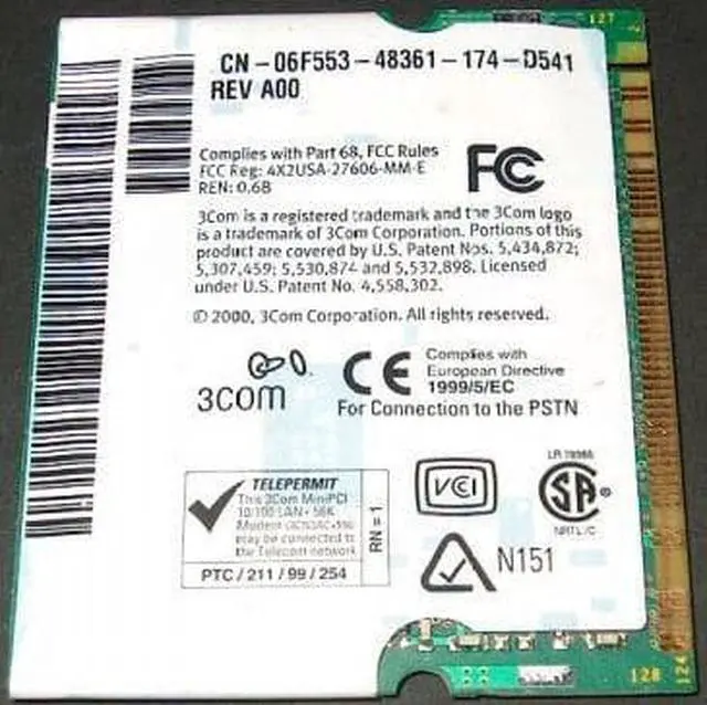 Dell 6F553 Mini-Pci 56K Modem & 10/100 Ethernet Combination Card