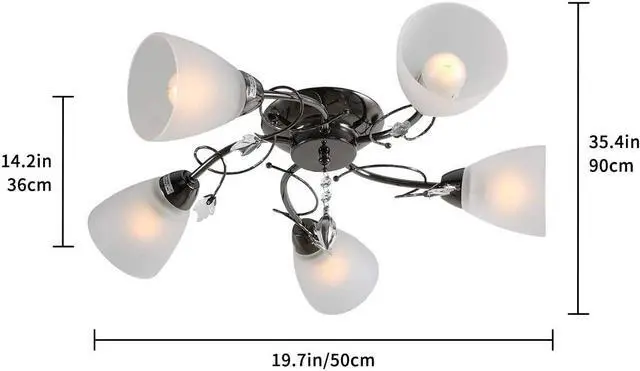 - Its surface is antique chrome finishes, and retro and outdated designs will add a stylish look. It can also complement your room. The ceiling chandelier is composed of five curved arms.