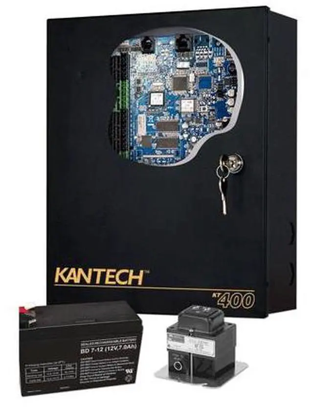 Additional Information Manufacturer Kantech Model EK-402 Dimensions (Enclosure) (H x W x D) 29.9 x 28.8 x 7.7 cm (11.75 x 11.375 x 3 in) Power Requirements 16 VAC, 75 VA, Class 2 transformer Inputs Eight monitored points, NO/NC, with or without end-of-line resistors (expandable to 16) Outputs Door Strike Power 12 VDC, 250 mA each, supervised Auxiliary Power Output 12 VDC @ 125 mA max., protected and supervised Temperature/Humidity From 2° to 40°C (35° to 110°F) Warranty 1 Year Warranty Weight 25.0000