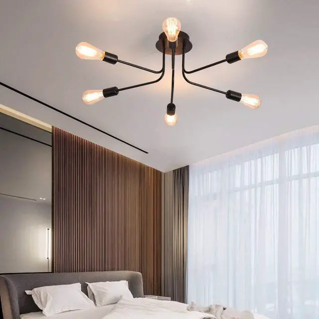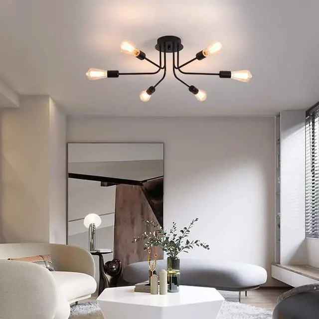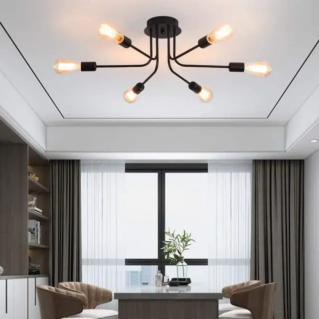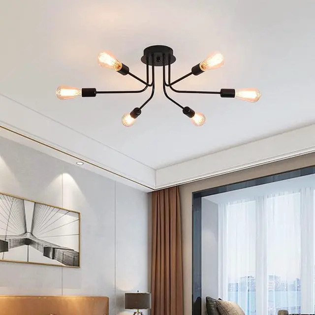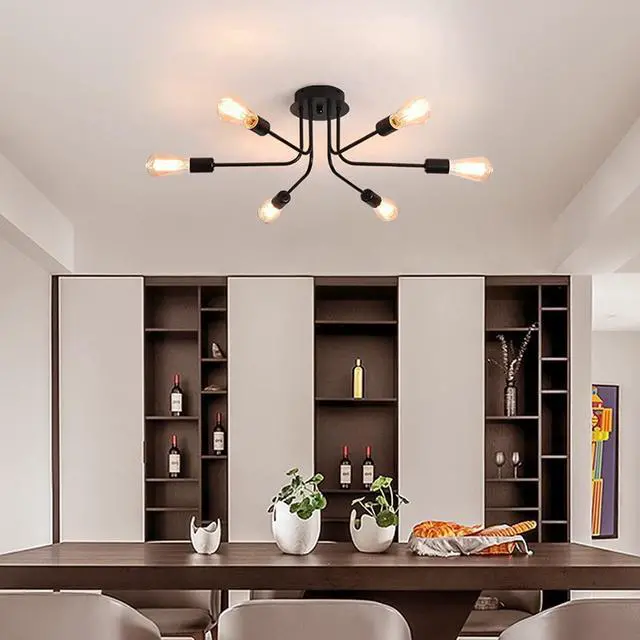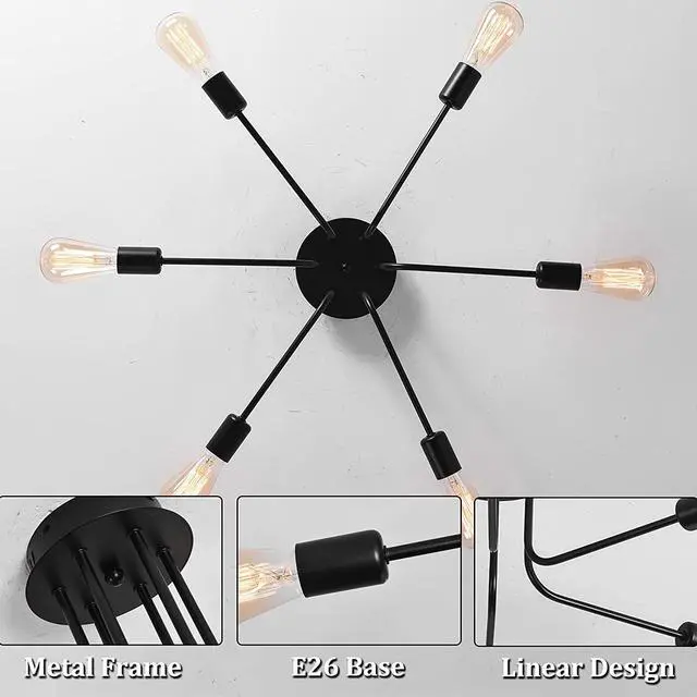 Compatible Wattage: 60 Watts. The semi flush mount ceiling lamp fixture requires 6 pcs of E26 regular light bulbs, LED or incandescent bulbs both available (Bulbs not included). It is not only suitable for industrial vintage, mid century, antique, rustic style, but also suitable for modern style, depending on what type of bulb is used. ??Wide Decor for Any Place—Modern farmhouse ceiling light is great for kitchen, dining room, foyers, hallway, bedroom, lobby, Bookstore, front porch, Garage, Winery, Warehouse, Barn, restaurant and any space you like.