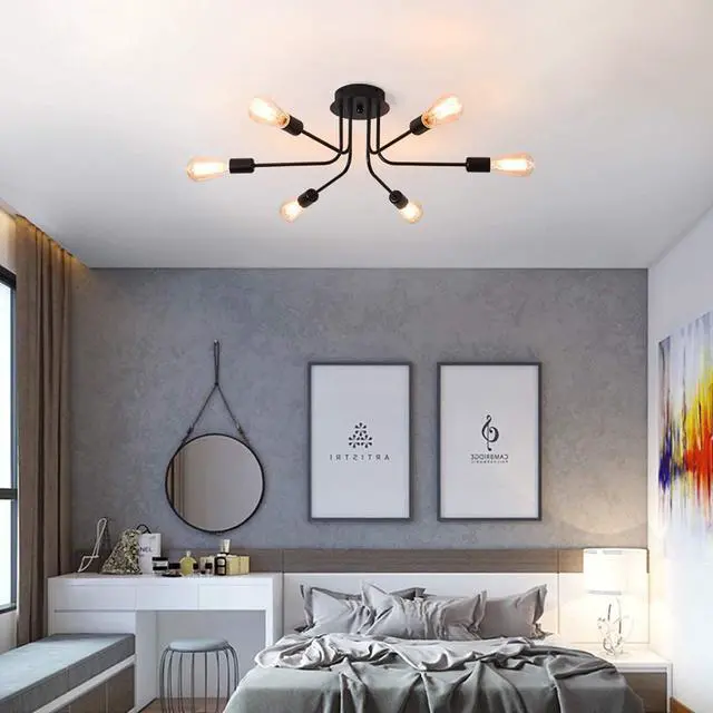 The industrial flush mount ceiling light with 6 light bulbs holder. You can use an Edison bulbs to display warm yellow light gives the environment a Retro vibe, or you can use a round clear bulbs which make the whole lamp look classier.
