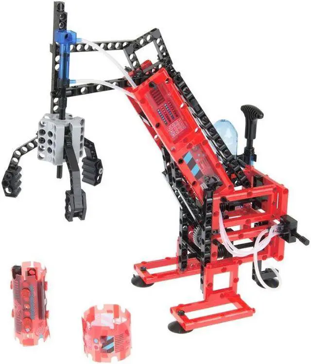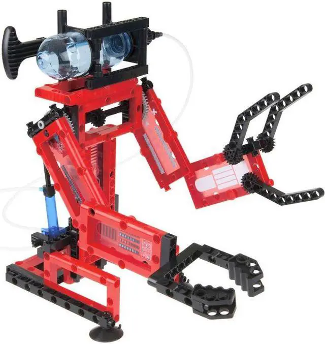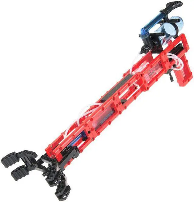 Construct a pivoting robotic laboratory arm with gripper claw. Assemble an extra long grabber claw to pick up things that are just out of reach. Build a vertical threefingered claw that can lift a cup up off the table keeping it level. Experiment with models of robotic exoskeleton arms and legs. Make a compact grabber claw that you can slip into your shirt sleeve to pretend you have a robotic hand.