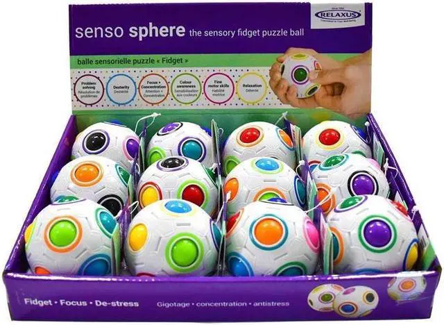 The Senso Sphere is a problemsolving puzzle Fidget Toy. The objective is to scramble the coloured balls then figure out how to get them all back into their matching coloured slots in all hole.