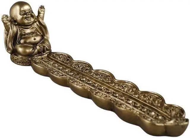 22-906 - LAUGHING BUDDHA GOLDEN INCENSE STICK HOLDER 8X2X2IN