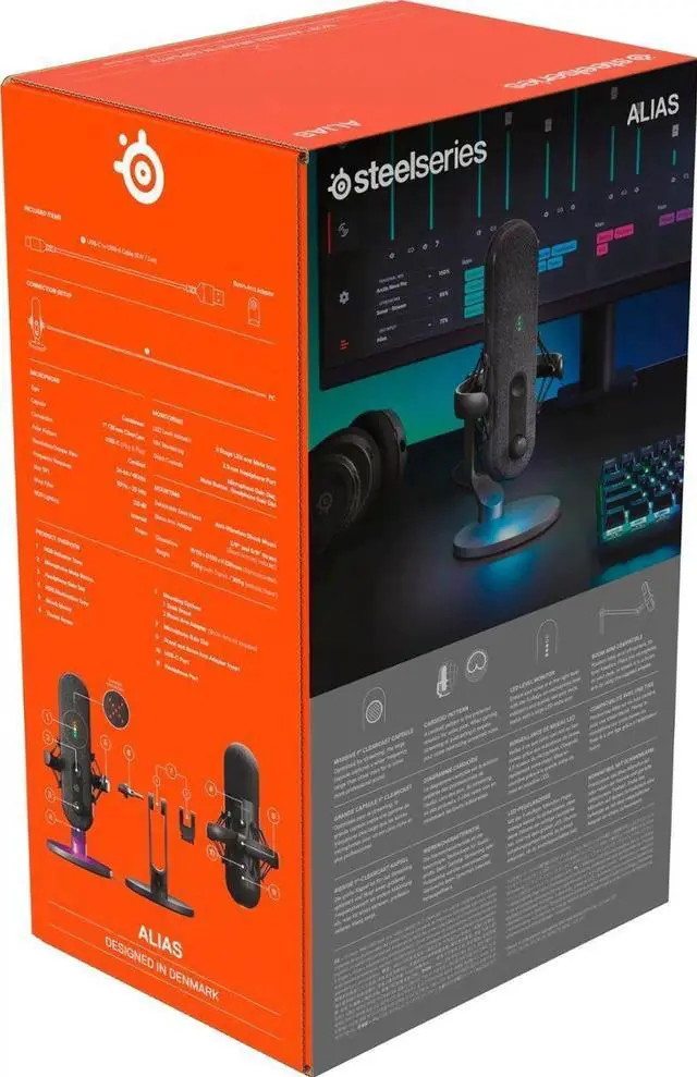 SteelSeries Alias USB Mic for PC - 3X Bigger Capsule for Gaming, Streaming and Podcasting - AI Noise Cancelling - LED Mute & Level Monitoring - Shock Mount