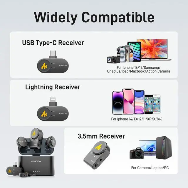 Creators: MAONO WAVE T5 with 9g weight and cutting-edge technology, small but mighty. It offers industry-leading broadcast sound quality and adjustable noise cancellation. Perfect for filmmakers, vloggers, and podcasters.