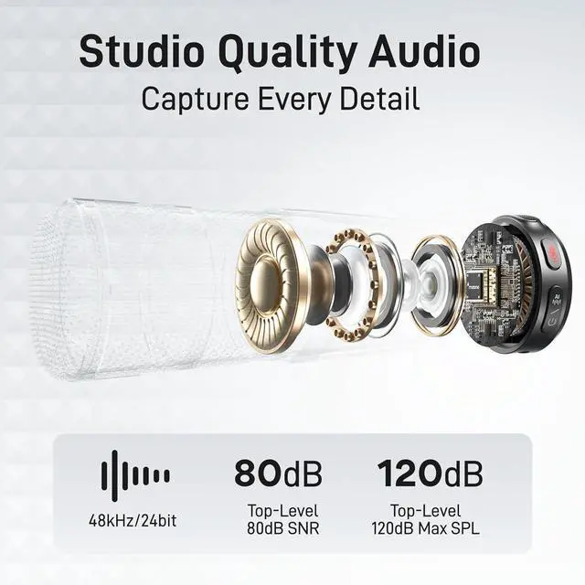 Studio-Grade Audio Quality: WAVE T5 delivers the industry's best 80dB signal-to-noise ratio, 120dB maximum sound pressure level, and 48kHz/24-bit audio format, capturing subtle sound details in various environments with low noise floor.