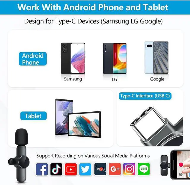 Compatible for Android Phone with Type-C OnlyOur lavalier microphone is compatible for android phone with USB C/Type-C port, not compatible with Motorola phones, easy to use. The handheld microphone is suitable for interviews, vlogs, blog, podcasts, live Youtube or Facebook.