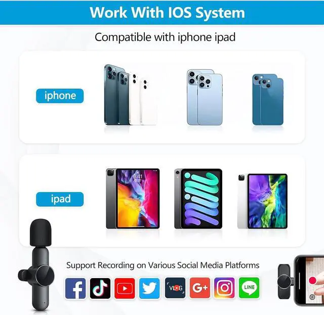 Compatible with IOS DevicesOur wireless lavalier microphone is compatible with IOS smartphones, iPad, etc