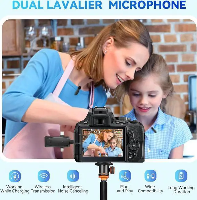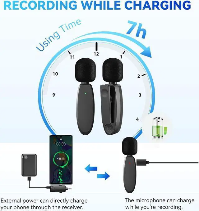 Dual-People Pickup MicWith the dual wireless microphone, it is possible to record the voices of multiple people simultaneously. It is a convenient feature for those who need to capture high-quality audio on multiple devices at the same time, such as during interviews or live performances.