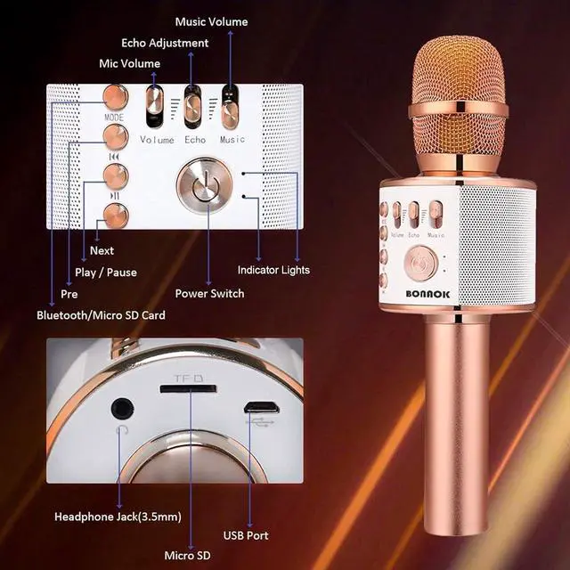 MICROPHONE FOR KIDS & ADULTS-Come with 1* BONAOK microphone, 1* Portable Black Case, 1* Audio Cable, 1*Charge Cable, 1*User Manual, and 1*Giftable Box. Christmas gifts idea for kids, teens and adults, friends and family, suitable for all kinds of holidays and festivals.