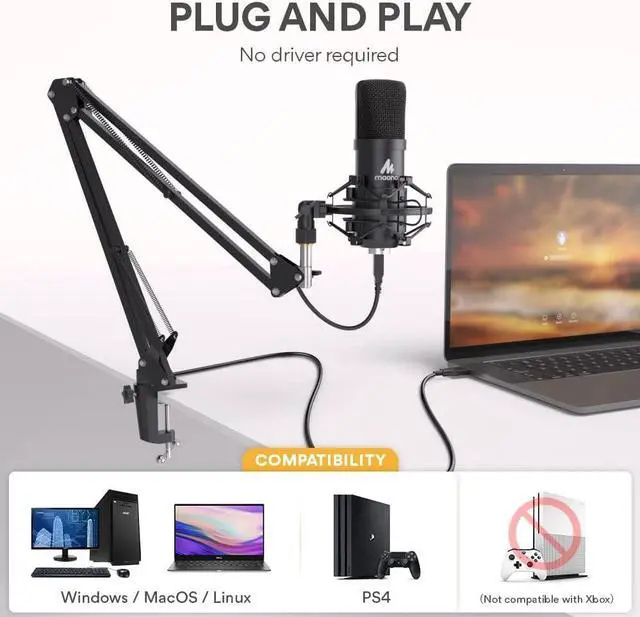 Plug and Play: The microphone has USB 2.0 data port which is easy to connect with your computer and Linux operation system, and no need extra driver software, and no need for an external sound card. Double shielding USB cable reduces interference. That makes it easy to sound good on a podcast, live streaming, video call, or most any other kind of recording.