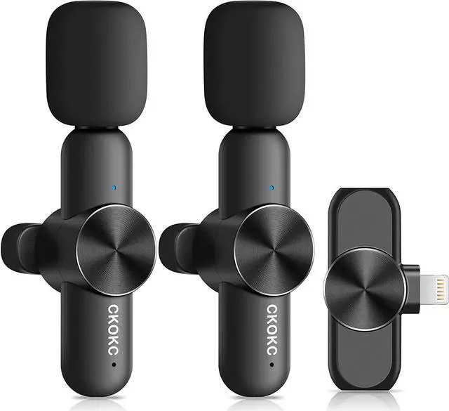 Dual Wireless Microphones for iPhoneThis dual wireless lavalier Microphone set comes with 2 transmitters and 1 receiver, perfect for video recording of 2 person talking and interview. Plug and play is easy to set it up, one-button pairing allow you to enjoy hands-free recording. (You can also use one mic and receiver set)