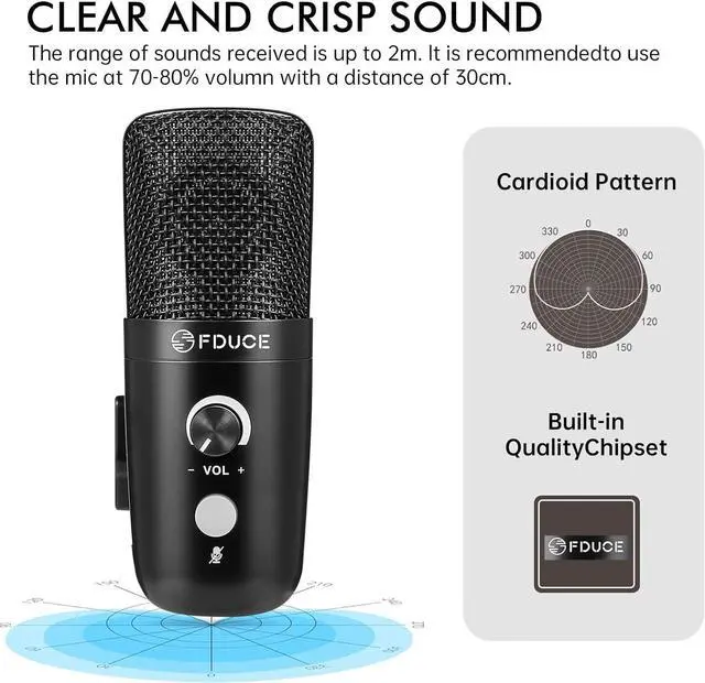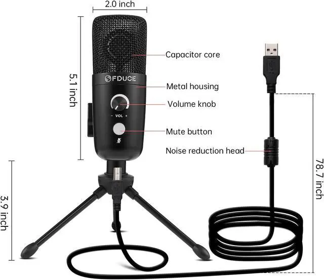 Plug & PlayFDUCE condenser microphone with noice reduction 2.0 USB cable is compatible with computer, PC, laptops (windows, MAC), PS4 etc. Perfect choice for recording, podcasting, Live Streaming (Skype, Zoom, YouTube etc).