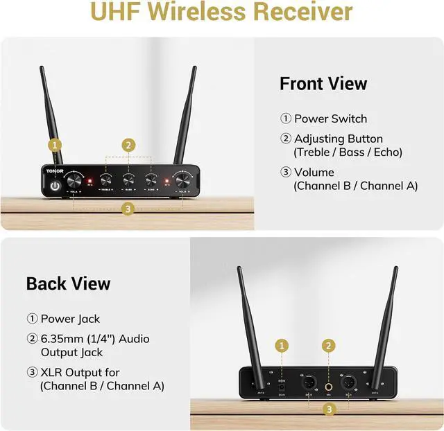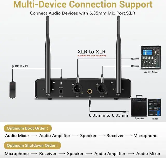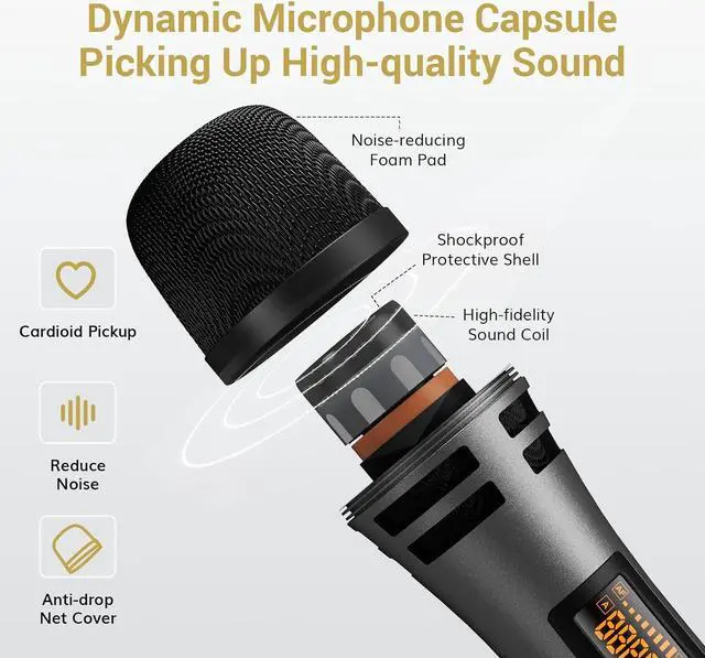 Wireless Freedom Range: With a 200ft (line of sight) operating range, our receiver allows you to move freely during performances with the cordless microphone, making it perfect for indoor and outdoor events like family karaoke, church gatherings, weddings, meetings, or lectures. Enjoy unrestricted performance and presentation with this system.