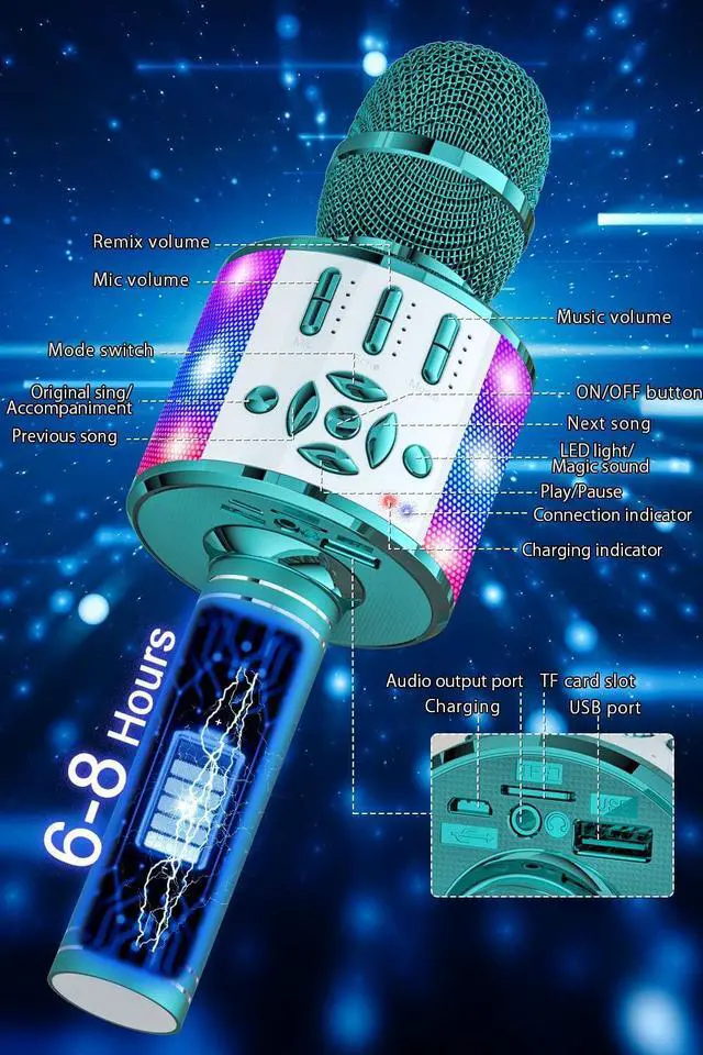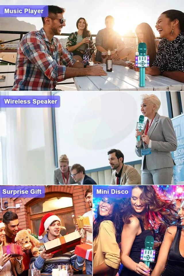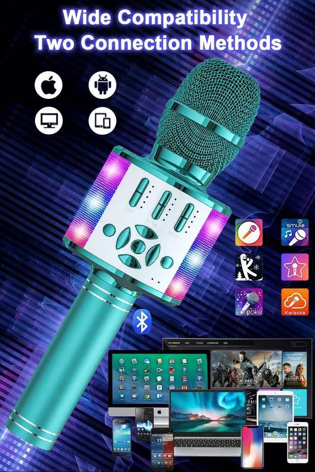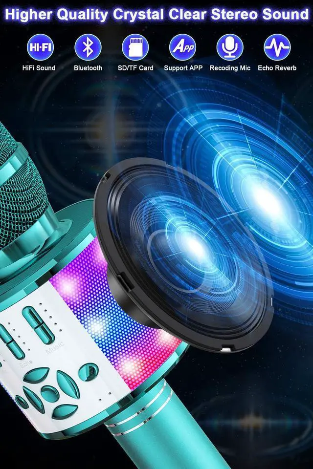 Multi-Function MicrophoneBONAOK Karaoke Microphone can be used as a wireless mic, SD/USB music player with controllable lights, Bluetooth speaker. A mini karaoke machine compatible with all smartphones.