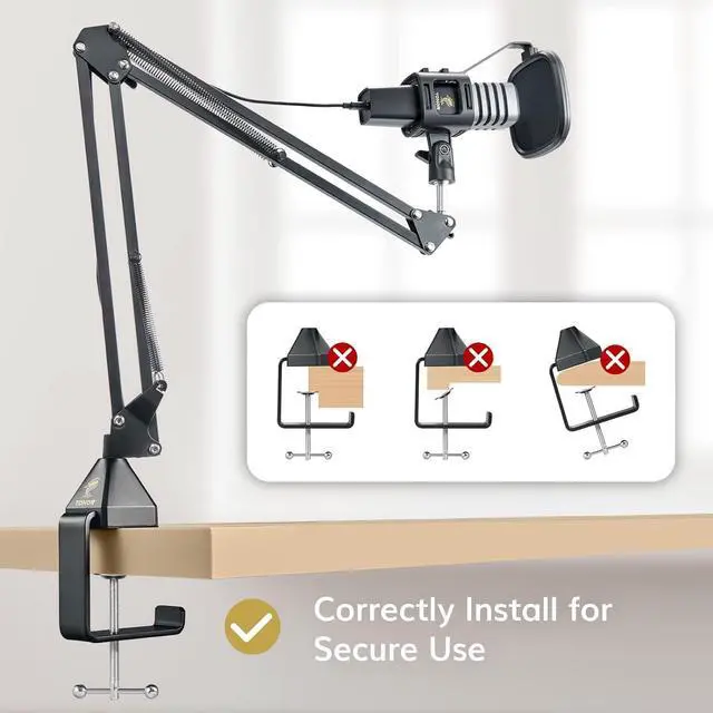 Easy Setup: Simply connect the streaming microphone with boom arm and fix the clamp on the desktop. The 180-degree flexible design of the boom arm allows you to adjust the angle according to your needs.