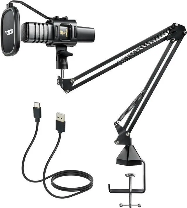 Strong Arm Stand: Included adjustable boom arm stand provides great flexibility when gaming or podcasting. The double layer pop filter of this podcast microphone effectively filters and minimizes popping and cracking sounds caused by air flow impact.