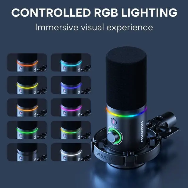 UNLOCK THE POTENTIAL IN MAONO LINK: Choose the perfect tone from microphone, and you can turn on/off the RGB light or switch in 9 different colors, also supports EQ, limiter, compressor adjustment in USB mode.
