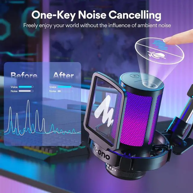 MORE FOCUS AND CLARITY - This gaming microphone with one-click noise cancellation technology, which can effectively eliminate background noise. Whether it's multiplayer online games, cooperative games, or competitive games, the USB microphone can capture game players' voices clearly, thereby enhancing the collaboration and competitiveness of the game. Cardioid pickup focuses more on capturing sound from the mic front, providing better sound quality and accuracy for gaming streaming or voice.