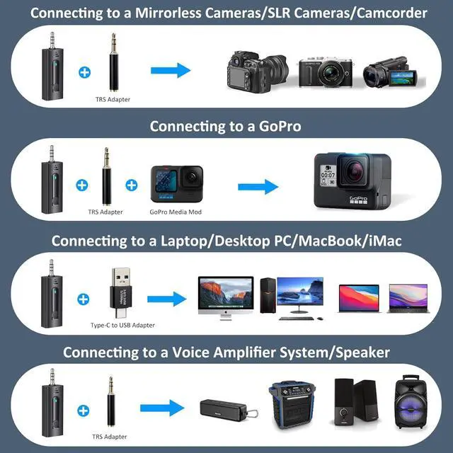 Compatible with All Devices Our lavalier mic is perfect for Camera/GoPro/iPhone/iPad/Android phone/Tablet/Desktop PC/Laptop/MacBook/iMac/Voice Amplifier/Speaker, making it suit for a range of applications, including Interview, Meeting, podcast, vlogging, Live streaming, YouTube, TikTok, Instagram, Facebook, etc. You can use the same microphone for all of your needs.