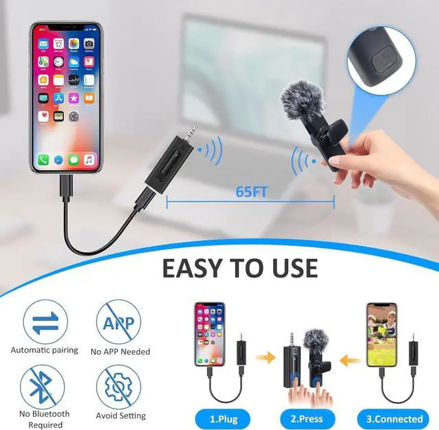 Automatic Connection & Easy to Use Our wireless lapel microphone has a plug-and-play design that makes it easy to get started. Simply connect the receiver to your device via a Lightning cable/Type-C cable/ 3.5 mm port/USB adapter and the wireless microphones will connect automatically. No driver installation or app download is required, making it an incredibly user-friendly option.