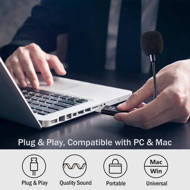 TALK CLOSELY AND CLEARLY: This mini USB microphone picks up clear sound for video tutorials, online classes and video calls via Skype, Zoom, Slack, Hangouts, and other web conferencing apps. It improves the weak and far sound of the laptop inside microphone instantly, then let people hear you closely and clearly.