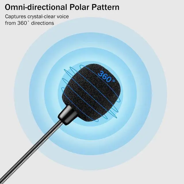 IMPROVED GOOSENECK & COMPACT DESIGN: The 360 degree adjustable gooseneck can be shaped as you want to put the microphone in an ideal position Some customers complained the gooseneck was too soft that could not hold the shape. We've improved the rigidity of the gooseneck in 2021 Version, it can stay at the place as you needNo cord and base needed-Compact design for keeping an organized space. Extremly light (43g) and very small-so you could put it in the computer carrying bag.