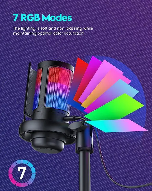 Gradient RGB Symphony Lights: Cyclic and gradient RGB lights, in line with your live broadcast aesthetics. Bring you an immersive gaming experience and awaken all your senses. There's also a palpable sense of security, and when the COCONISE microphone is muted, the RGB lights go off to let you know you're working. Prevent accidents when you forget to mute your PC microphone for gaming.