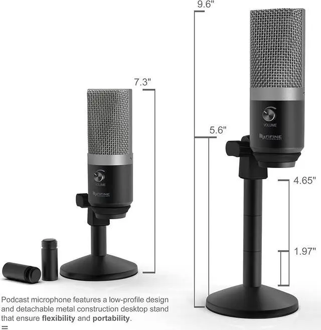 [Sturdy Desktop Design] Vocal microphone USB features a low-profile design and detachable metal construction desktop stand, which ensure flexibility and portability. Easy to assemble PC microphone stand with 3 detachable stand tube heighten from 1.97 to 4.65. Thick, heavy base plate, can be moved around without falling over on other equipment.
