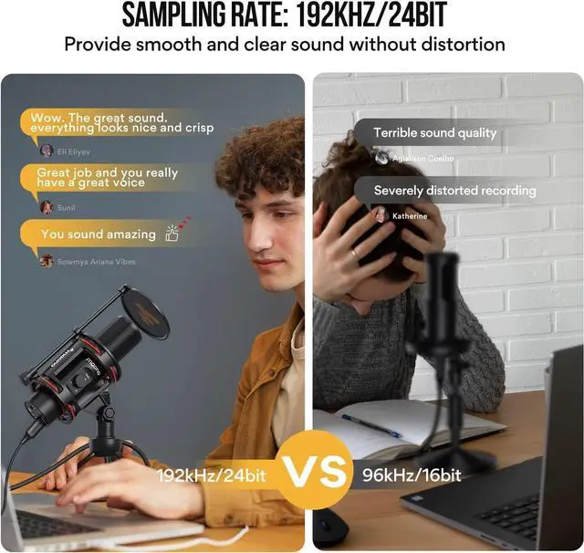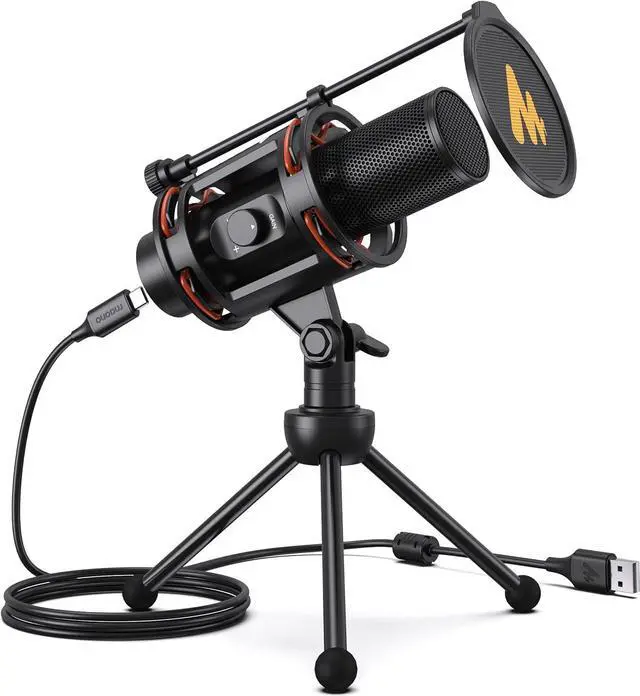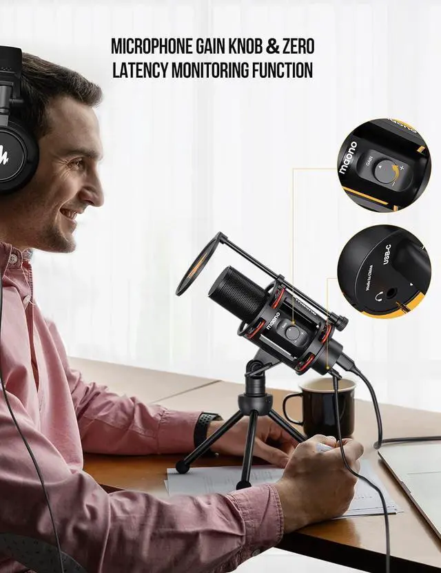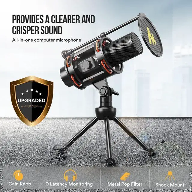 Computer Microphone: All-in-one package, compact and lightweight. This multifunctional podcast microphone comes with a mic gain knob and zero-latency monitoring. It is compatible with Windows and