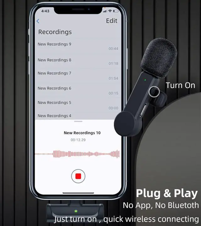 10Hour Battery: wireless microphone battery work over 10 hours, rechargeable. A great wireless lav mic for phone, the receiver support phone charging while using, no worry of phone power issue while podcasting