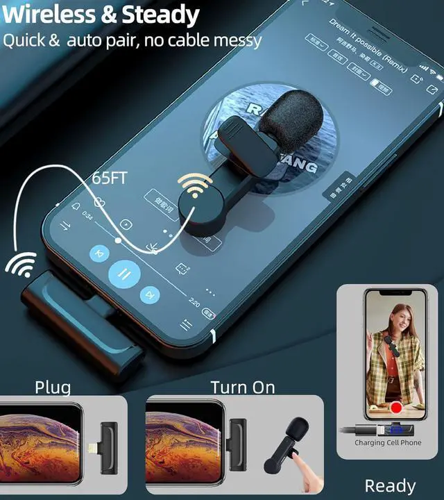 Full Compatibility: the wireless lapel mic cordless compatible with Samsung, Google Pixel, Android Phone, Tablet Laptop USB C port Devices (some android device need manually turn on OTG function or developer mode, using with 3rd party Camera App)