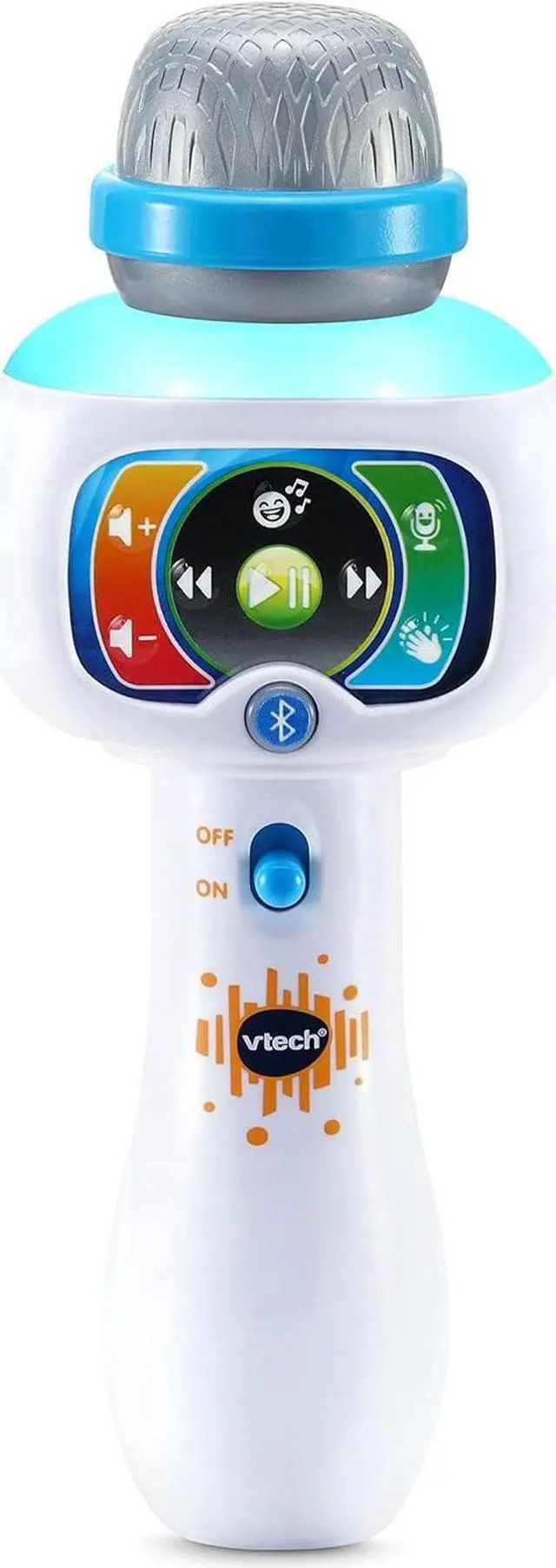 Sing with color-changing lights flashing from the microphone; hear encouragement and applause after you perform