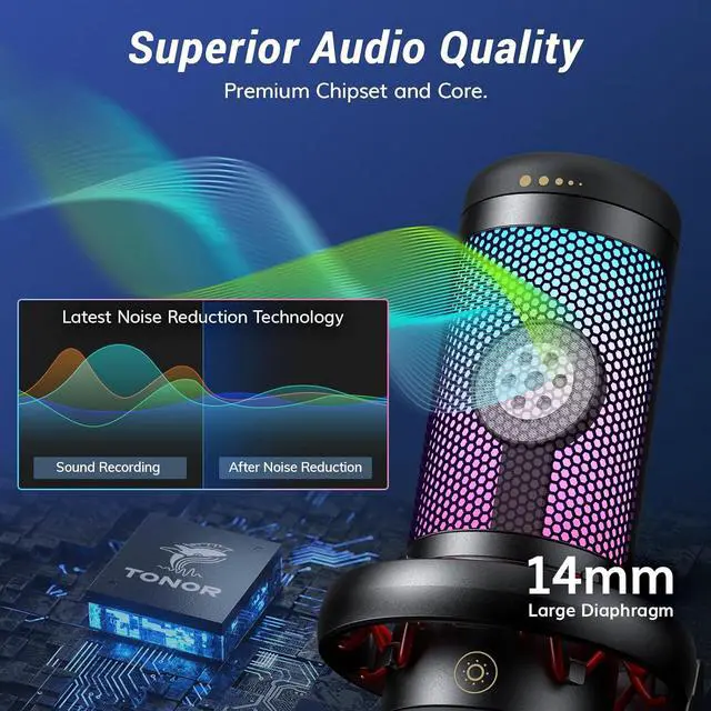 Unrivaled Audio Quality: The TC310+ gaming mic equiped premium chips and core, coupled with expert tuning by engineers, resulting in ultra-low noise levels and a pure, clean sound. It delivers crystal-clear clarity and full-bodied sound, providing high-fidelity reproduction that brings your recordings to life. Whether you're a gamer, podcaster, or YouTuber, the TC310+ ensures that your voice will be heard loud and clear.