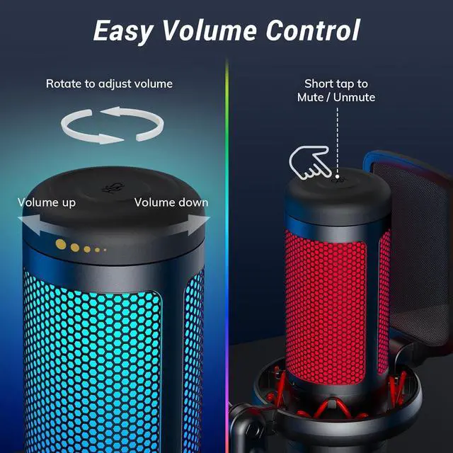 Brightness Control: Adjust the brightness of the RGB lights by simply rotating the bottom of the usb microphone, creating the perfect lighting atmosphere to suit your needs.